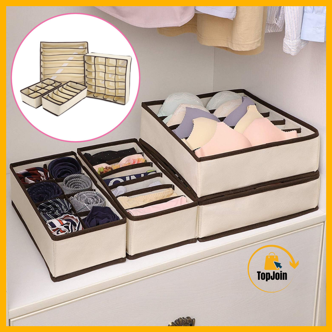 Acaba con el desorden en tus cajones y mantén tu ropa interior, calcetines y sujetadores perfectamente organizados con nuestro Set de 4 Organizadores, con compartimentos de diferentes tamaños, es la solución ideal para maximizar el espacio en tus cajones y encontrar tus prendas rápidamente.